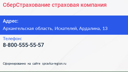 СберСтрахование, страховая компания по адресу Архангельская область, Искателей, Ардалина, 13 в дальнейшем Организация, размещена в следующих категориях: