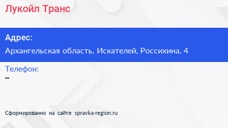 Лукойл-Транс по адресу Архангельская область, Искателей, Россихина, 4 в дальнейшем Организация, размещена в следующих категориях: