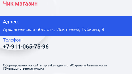 Чик, магазин по адресу Архангельская область, Искателей, Губкина, 8 в дальнейшем Организация, размещена в следующих категориях: