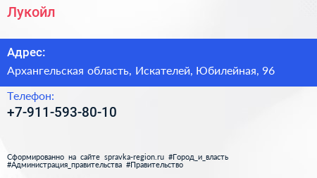 Лукойл по адресу Архангельская область, Искателей, Юбилейная, 96 в дальнейшем Организация, размещена в следующих категориях: