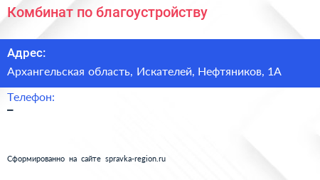 Комбинат по благоустройству по адресу Архангельская область, Искателей, Нефтяников, 1А в дальнейшем Организация, размещена в следующих категориях: