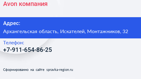 Avon, компания по адресу Архангельская область, Искателей, Монтажников, 32 в дальнейшем Организация, размещена в следующих категориях: