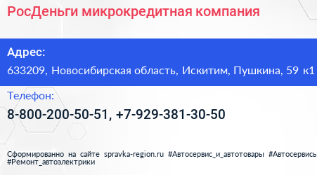 РосДеньги, микрокредитная компания по адресу 633209, Новосибирская область, Искитим, Пушкина, 59 к1 в дальнейшем Организация, размещена в следующих категориях: