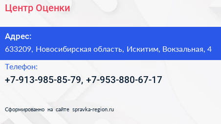 Центр Оценки по адресу 633209, Новосибирская область, Искитим, Вокзальная, 4 в дальнейшем Организация, размещена в следующих категориях: