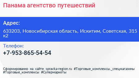Панама, агентство путешествий по адресу 633203, Новосибирская область, Искитим, Советская, 315 к2 в дальнейшем Организация, размещена в следующих категориях: