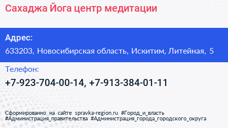 Сахаджа Йога, центр медитации по адресу 633203, Новосибирская область, Искитим, Литейная, 5 в дальнейшем Организация, размещена в следующих категориях: