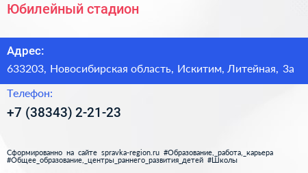 Юбилейный, стадион по адресу 633203, Новосибирская область, Искитим, Литейная, 3а в дальнейшем Организация, размещена в следующих категориях: