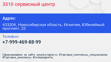 3310, сервисный центр по адресу 633204, Новосибирская область, Искитим, Юбилейный проспект, 22 в дальнейшем Организация, размещена в следующих категориях:
