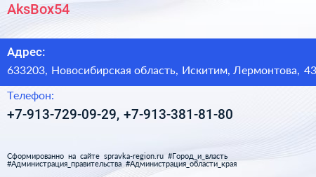 AksBox54 по адресу 633203, Новосибирская область, Искитим, Лермонтова, 43 в дальнейшем Организация, размещена в следующих категориях: