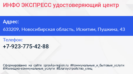 ИНФО ЭКСПРЕСС, удостоверяющий центр по адресу 633209, Новосибирская область, Искитим, Пушкина, 43 в дальнейшем Организация, размещена в следующих категориях: