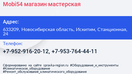 Mobi54, магазин-мастерская по адресу 633209, Новосибирская область, Искитим, Станционная, 24 в дальнейшем Организация, размещена в следующих категориях: