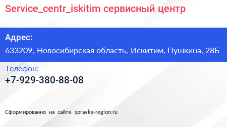 Service_centr_iskitim, сервисный центр по адресу 633209, Новосибирская область, Искитим, Пушкина, 28Б в дальнейшем Организация, размещена в следующих категориях: