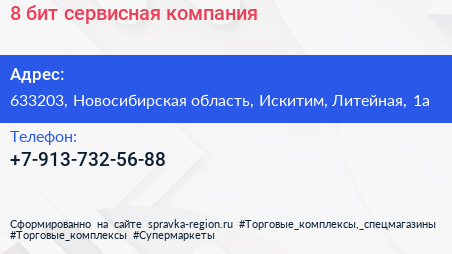 8 бит, сервисная компания по адресу 633203, Новосибирская область, Искитим, Литейная, 1а в дальнейшем Организация, размещена в следующих категориях: