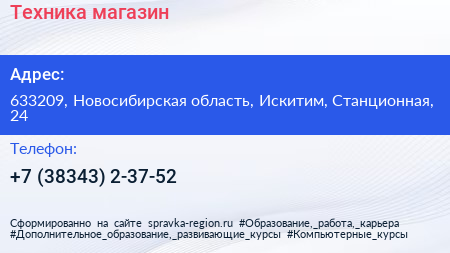 Техника, магазин по адресу 633209, Новосибирская область, Искитим, Станционная, 24 в дальнейшем Организация, размещена в следующих категориях: