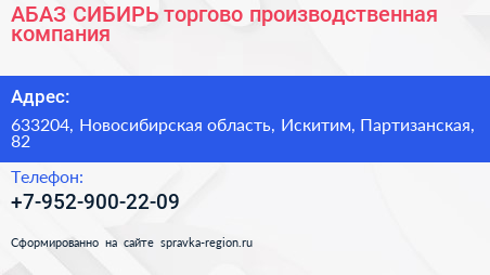 АБАЗ-СИБИРЬ, торгово-производственная компания по адресу 633204, Новосибирская область, Искитим, Партизанская, 82 в дальнейшем Организация, размещена в следующих категориях: