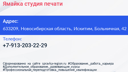 Ямайка, студия печати по адресу 633209, Новосибирская область, Искитим, Больничная, 42 в дальнейшем Организация, размещена в следующих категориях: