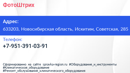 ФотоШтрих по адресу 633203, Новосибирская область, Искитим, Советская, 285 в дальнейшем Организация, размещена в следующих категориях: