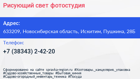 Рисующий свет, фотостудия по адресу 633209, Новосибирская область, Искитим, Пушкина, 28Б в дальнейшем Организация, размещена в следующих категориях: