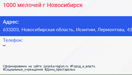 1000 мелочей, г. Новосибирск по адресу 633203, Новосибирская область, Искитим, Лермонтова, 43 в дальнейшем Организация, размещена в следующих категориях: