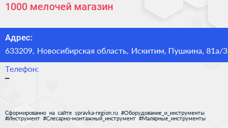 1000 мелочей, магазин по адресу 633209, Новосибирская область, Искитим, Пушкина, 81а/3 в дальнейшем Организация, размещена в следующих категориях: