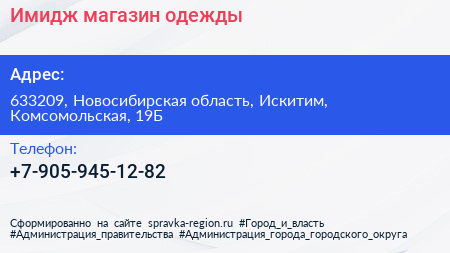 Имидж, магазин одежды по адресу 633209, Новосибирская область, Искитим, Комсомольская, 19Б в дальнейшем Организация, размещена в следующих категориях: