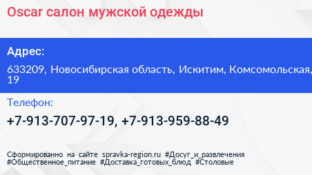 Oscar, салон мужской одежды по адресу 633209, Новосибирская область, Искитим, Комсомольская, 19 в дальнейшем Организация, размещена в следующих категориях: