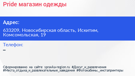 Pride, магазин одежды по адресу 633209, Новосибирская область, Искитим, Комсомольская, 19 в дальнейшем Организация, размещена в следующих категориях: