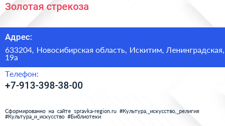 Золотая стрекоза по адресу 633204, Новосибирская область, Искитим, Ленинградская, 19а в дальнейшем Организация, размещена в следующих категориях: