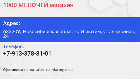 1000 МЕЛОЧЕЙ, магазин по адресу 633209, Новосибирская область, Искитим, Станционная, 24 в дальнейшем Организация, размещена в следующих категориях: