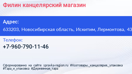 Филин, канцелярский магазин по адресу 633203, Новосибирская область, Искитим, Лермонтова, 43 в дальнейшем Организация, размещена в следующих категориях: