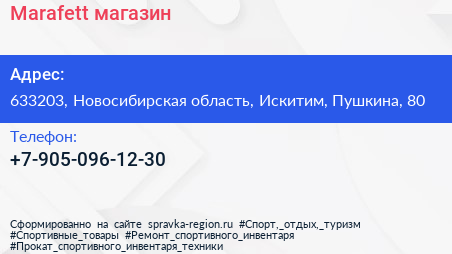 Marafett, магазин по адресу 633203, Новосибирская область, Искитим, Пушкина, 80 в дальнейшем Организация, размещена в следующих категориях: