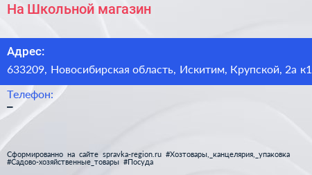 На Школьной, магазин по адресу 633209, Новосибирская область, Искитим, Крупской, 2а к1 в дальнейшем Организация, размещена в следующих категориях: