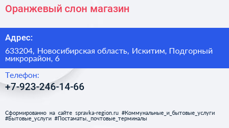 Оранжевый слон, магазин по адресу 633204, Новосибирская область, Искитим, Подгорный микрорайон, 6 в дальнейшем Организация, размещена в следующих категориях: