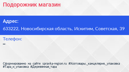 Подорожник, магазин по адресу 633222, Новосибирская область, Искитим, Советская, 39 в дальнейшем Организация, размещена в следующих категориях: