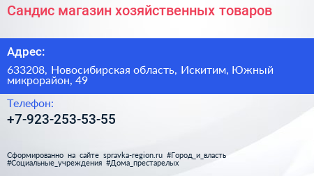 Сандис, магазин хозяйственных товаров по адресу 633208, Новосибирская область, Искитим, Южный микрорайон, 49 в дальнейшем Организация, размещена в следующих категориях: