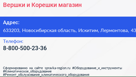 Вершки и Корешки, магазин по адресу 633203, Новосибирская область, Искитим, Лермонтова, 43 в дальнейшем Организация, размещена в следующих категориях: