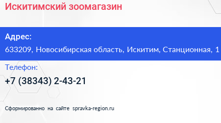 Искитимский зоомагазин по адресу 633209, Новосибирская область, Искитим, Станционная, 1 в дальнейшем Организация, размещена в следующих категориях: