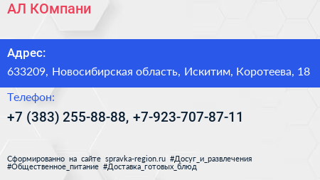 АЛ.КОмпани по адресу 633209, Новосибирская область, Искитим, Коротеева, 18 в дальнейшем Организация, размещена в следующих категориях: