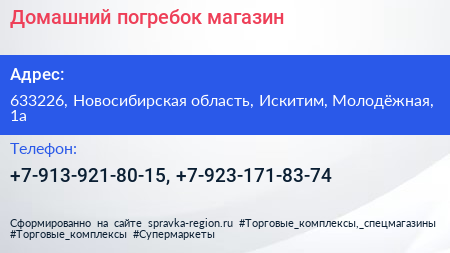 Домашний погребок, магазин по адресу 633226, Новосибирская область, Искитим, Молодёжная, 1а в дальнейшем Организация, размещена в следующих категориях: