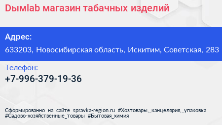 Dымlab, магазин табачных изделий по адресу 633203, Новосибирская область, Искитим, Советская, 283 в дальнейшем Организация, размещена в следующих категориях:
