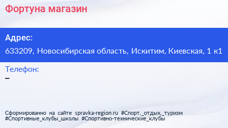 Фортуна, магазин по адресу 633209, Новосибирская область, Искитим, Киевская, 1 к1 в дальнейшем Организация, размещена в следующих категориях: