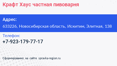 Крафт Хаус, частная пивоварня по адресу 633226, Новосибирская область, Искитим, Элитная, 138 в дальнейшем Организация, размещена в следующих категориях: