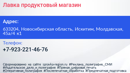 Лавка, продуктовый магазин по адресу 633204, Новосибирская область, Искитим, Молдавская, 45а/4 к1 в дальнейшем Организация, размещена в следующих категориях:
