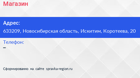 Адрес: Новосибирская область, Искитим, Коротеева, 20