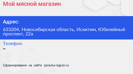 Мой мясной, магазин по адресу 633204, Новосибирская область, Искитим, Юбилейный проспект, 22а в дальнейшем Организация, размещена в следующих категориях: