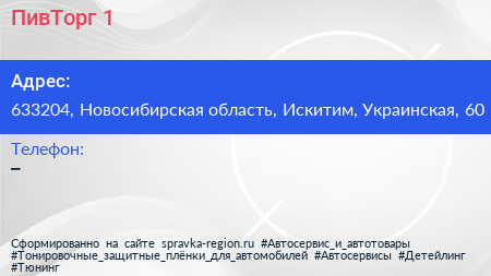 ПивТорг №1 по адресу 633204, Новосибирская область, Искитим, Украинская, 60 в дальнейшем Организация, размещена в следующих категориях: