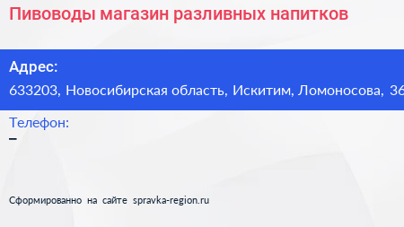 Пивоводы, магазин разливных напитков по адресу 633203, Новосибирская область, Искитим, Ломоносова, 36 в дальнейшем Организация, размещена в следующих категориях: