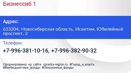Бизнессиб-1 по адресу 633204, Новосибирская область, Искитим, Юбилейный проспект, 2 в дальнейшем Организация, размещена в следующих категориях: