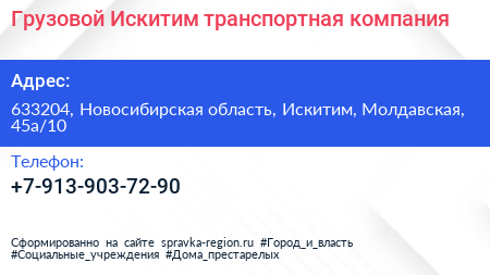 Грузовой Искитим, транспортная компания по адресу 633204, Новосибирская область, Искитим, Молдавская, 45а/10 в дальнейшем Организация, размещена в следующих категориях: