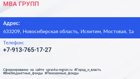 МВА ГРУПП по адресу 633209, Новосибирская область, Искитим, Мостовая, 1а в дальнейшем Организация, размещена в следующих категориях: